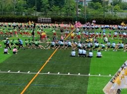 今回は毎年使用していた高校グラウンドが工事の為使用できず、初めて関西大学の中央グラウンドにての開催となりました。本格的な陸上競技用レーンも備えた大きなグラウンドに立派な観客席もあり、競技の上でも観戦の上でも、大変よい体育祭となりました。ご協力いただいた大学関係者の皆様、また観戦し応援いただいた保護者の皆様、ありがとうございました。