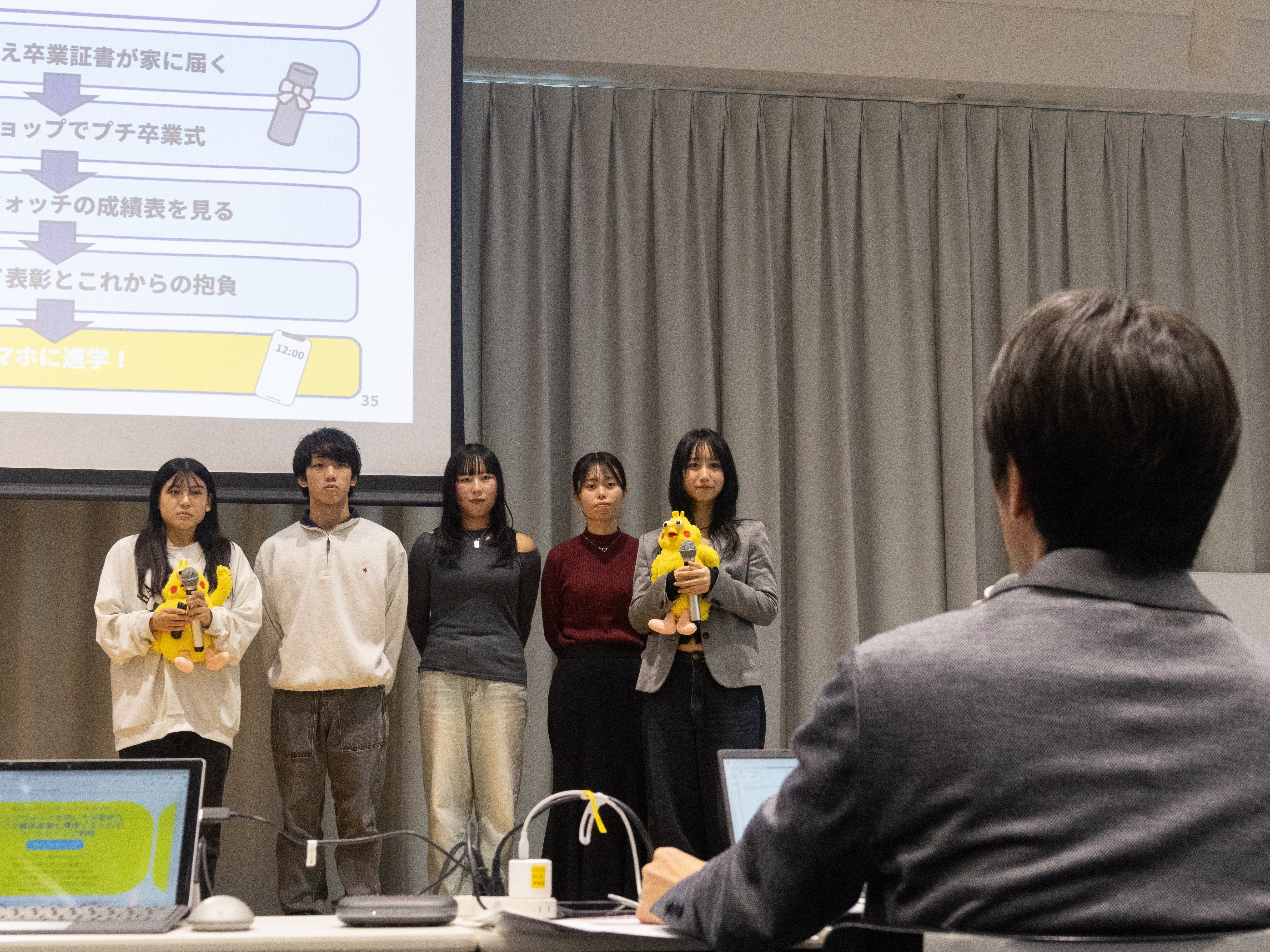 私たち石田ゼミは、約6ヶ月にわたり企業研究、Z・α世代の意識調査、携帯キャリア業界の分析を通じて、「キッズウォッチを用いた長期的なドコモ顧客を獲得するためのマーケティング戦略」を提案しました。最終発表会では、NTTドコモの方々を含め4名の審査員によって行われ、石田真貴ゼミでは準グランプリを獲得することができました。