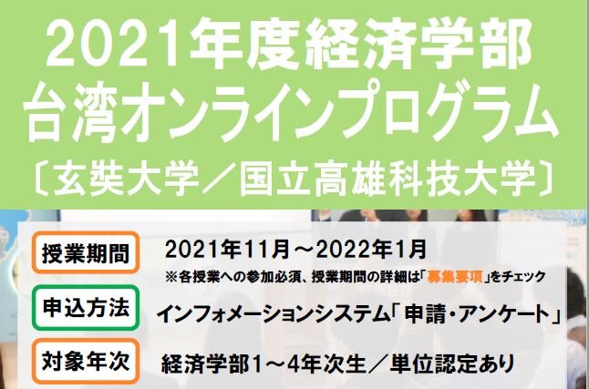 2021年度経済学部GoLDプログラム/台湾〔オンライン〕の募集要項について