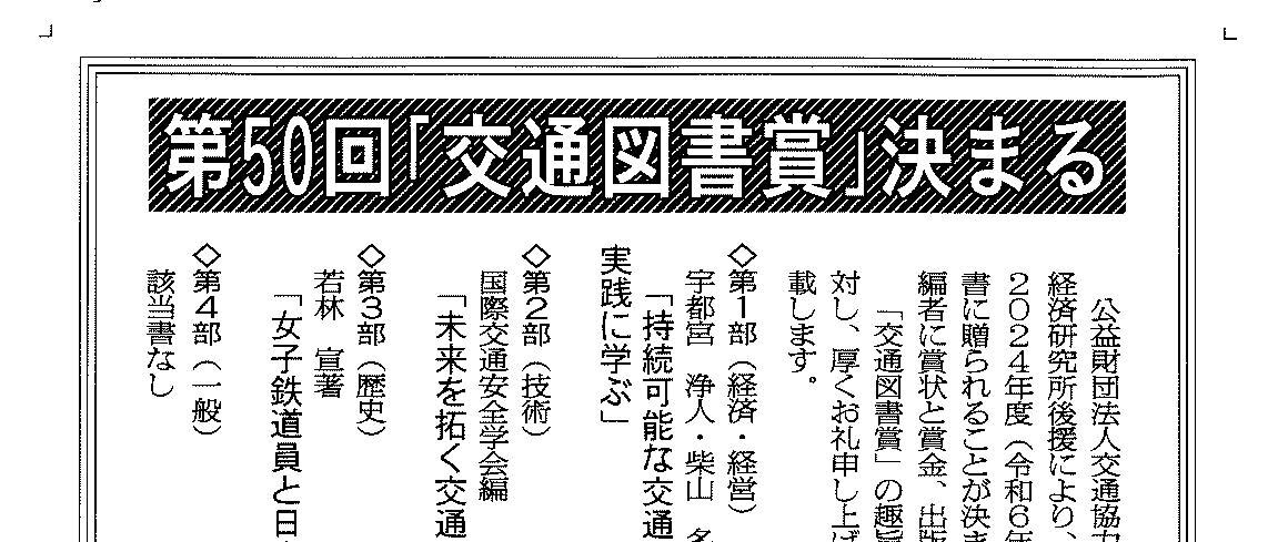 宇都宮浄人教授の『持続可能な交通まちづくり ー欧州の実践に学ぶ』が第50回交通図書賞を受賞しました