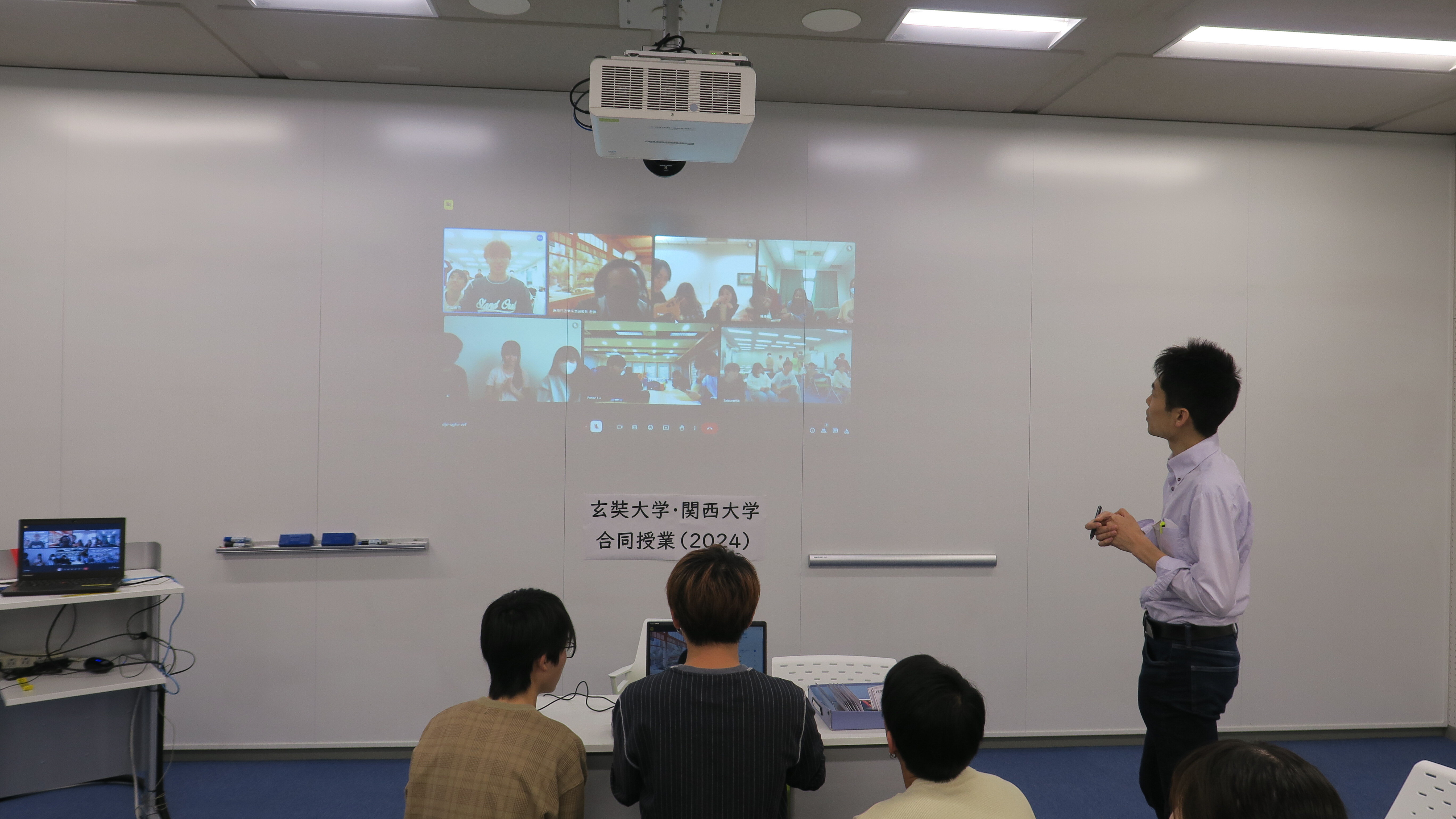 参加学生の中には、いつもは一歩引いたような感じで人に接している学生がいたのですが、彼が、画面に顔を押し付けるようにして、丁寧にハキハキと話し、一生懸命に意思疎通を図っている姿が見れました。「発音きれいですね~」「話し方がかわいいですね~」など、玄奘大学の学生の盛り上げかたも、とっても上手でした。