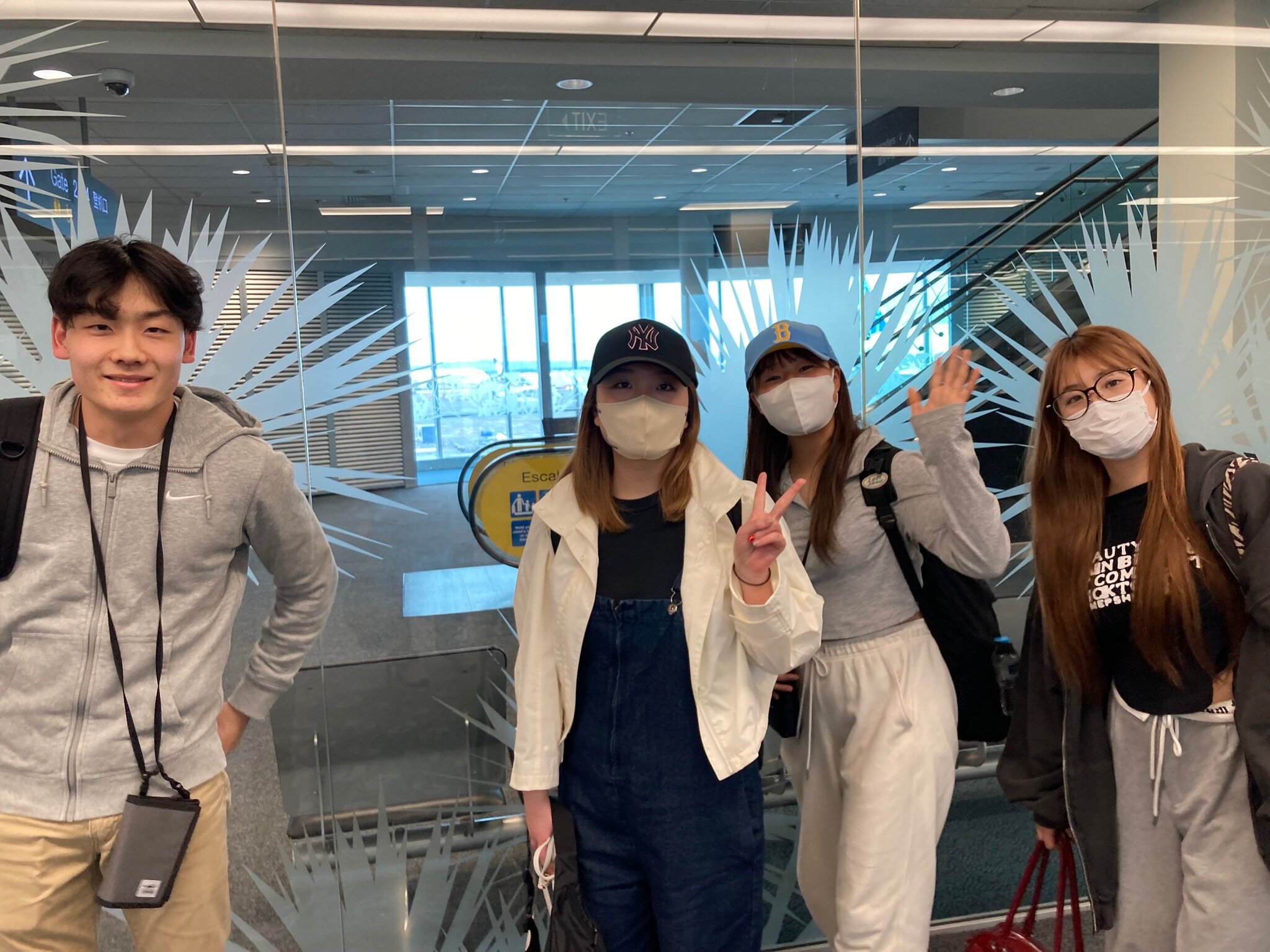 長旅の疲れは見られたものの、事前に連絡を取っていたホストファミリーとの対面を喜ぶ学生の姿が見られました。