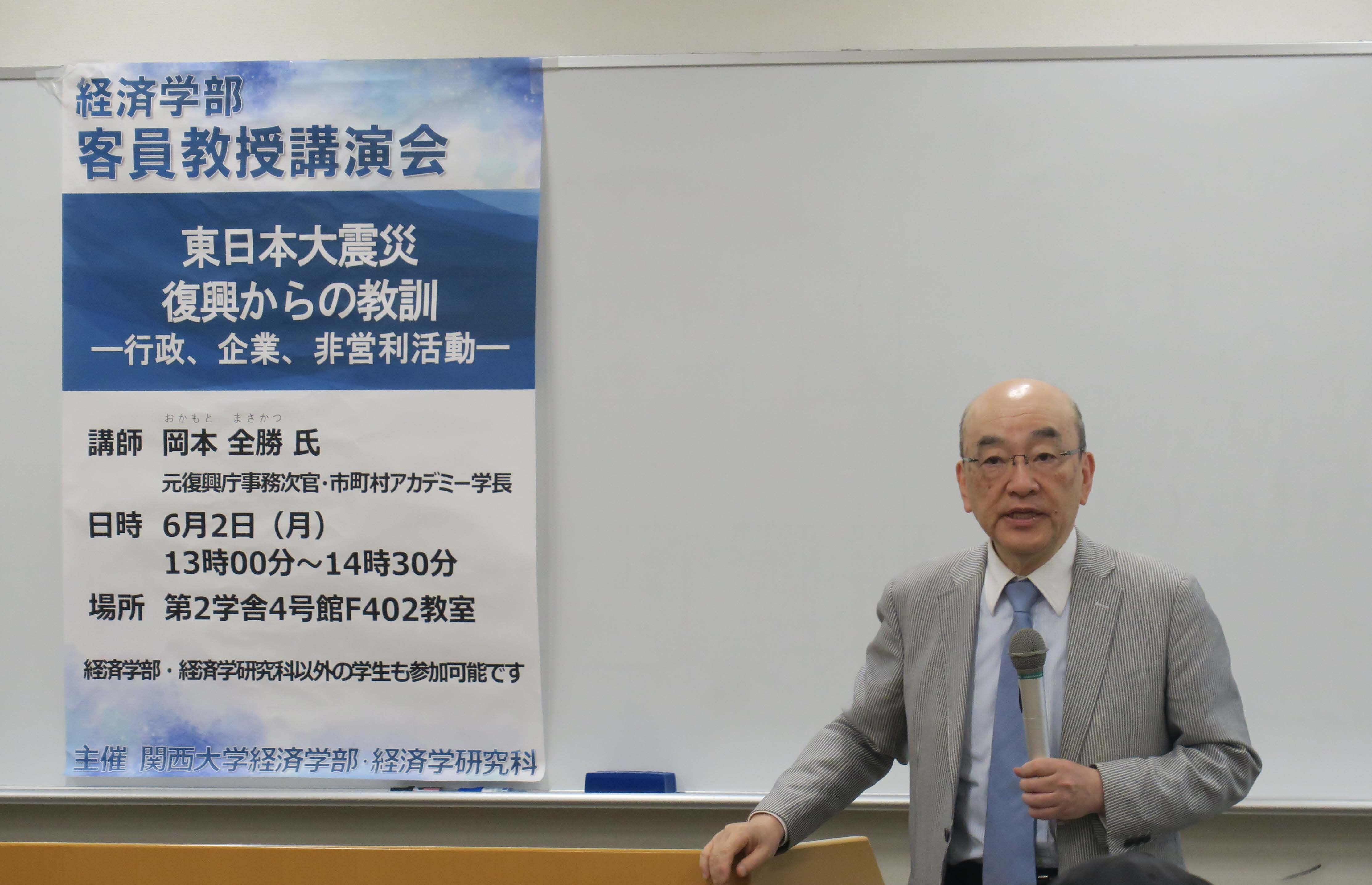 6月2日(月)に、元復興庁事務次官で、現在(財)市町村アカデミー学長の岡本全勝客員教授の講演会を開催しました。