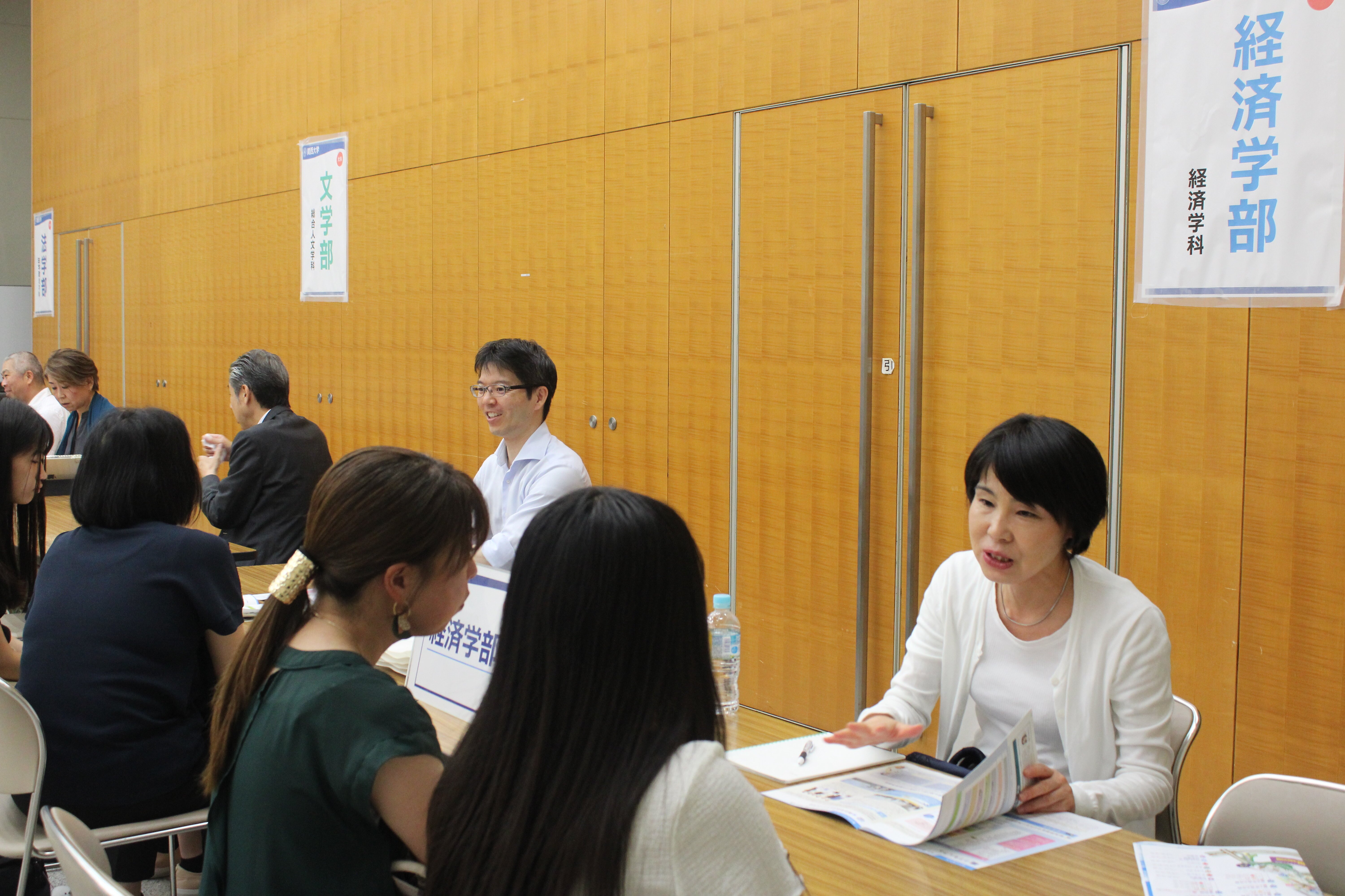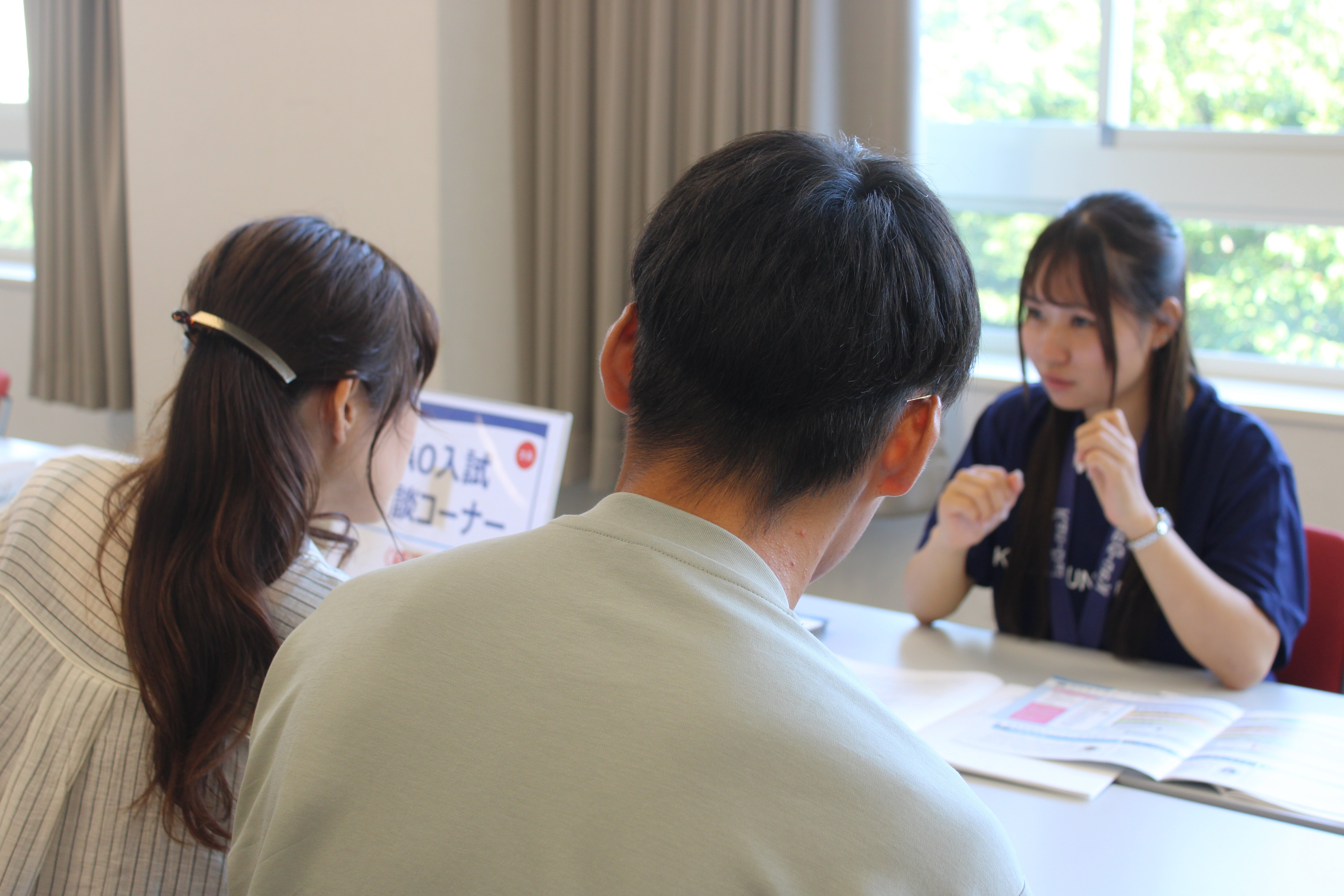 また、学生スタッフによる個別相談にもたくさんの方がお越しくださり、経済学部ならではの特徴や日々の学びについて、学生目線で学部の魅力をお伝えできたのではないでしょうか。学生自身も、来場者の皆さまとのやりとりを通して経済学部の魅力を再認識し、頼もしい表情で活躍していました。