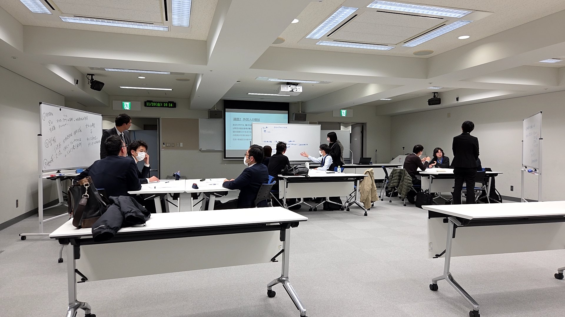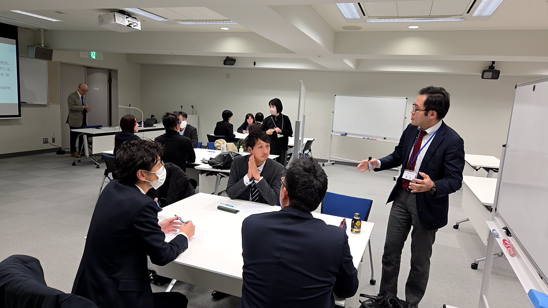 グループワークでは、近年どの自治体でも課題になっている「職員数不足」「外国人の増加」を取り上げ、参加者が副市長であったとすれば各課題に対してどのような対策を取れば良いか、という点についてグループで話し合いました。話し合った後は、その内容をグループごとに発表するだけでなく、他のグループとの質疑応答もあり、活発な意見交換が行われました。