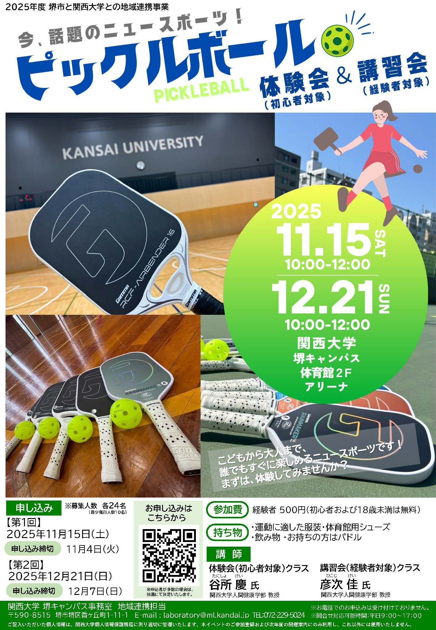 関西大学堺キャンパス事務室 地域連携担当「ピックルボール 体験会・講習会」係