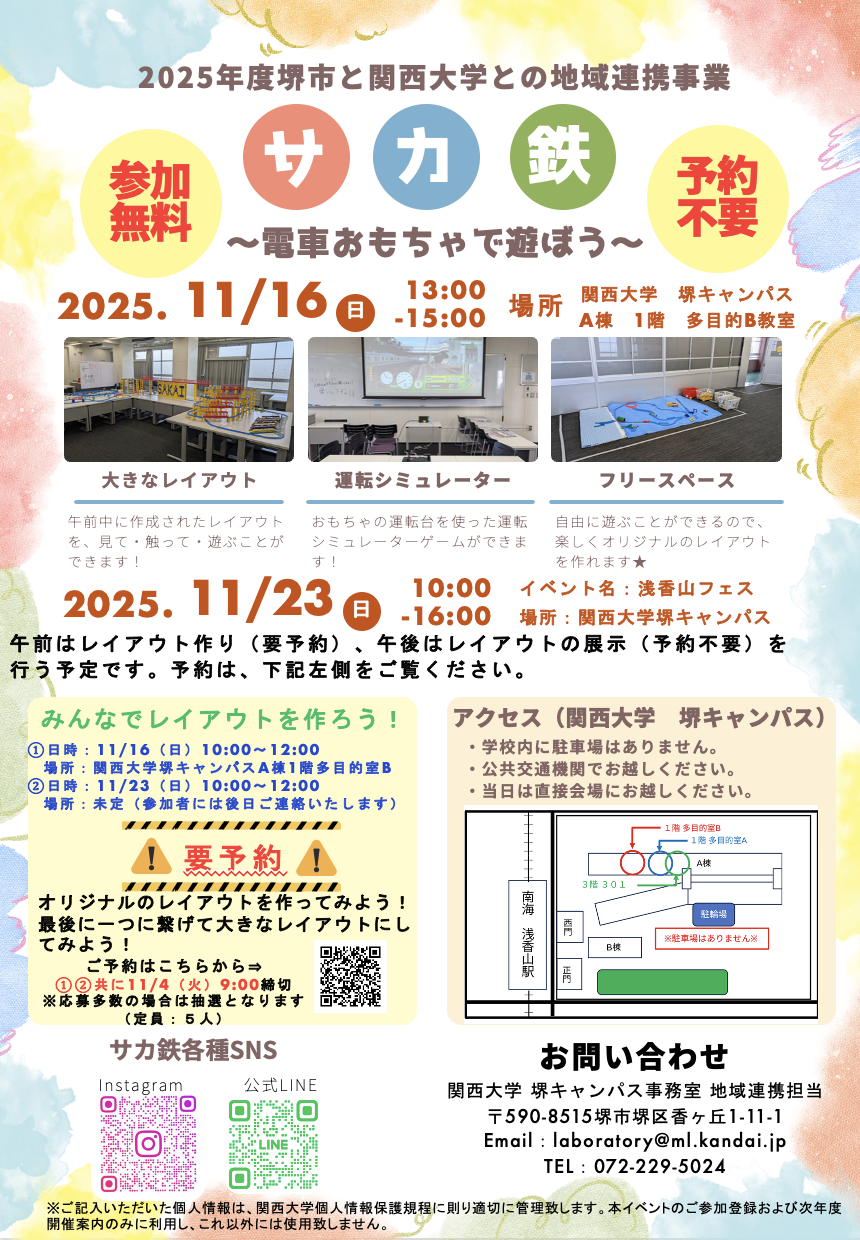 堺市と関西大学との地域連携事業の一環として、「サカ鉄~電車おもちゃで遊ぼう~」を開催いたします。