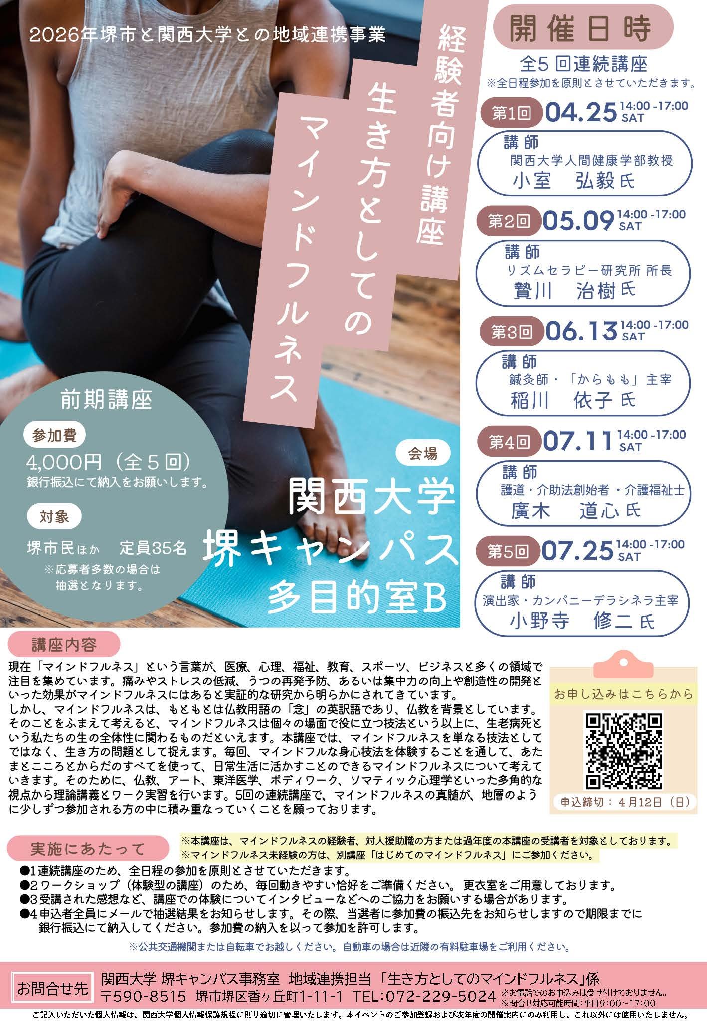 関西大学堺キャンパス事務室 地域連携担当「生き方としてのマインドフルネス」係