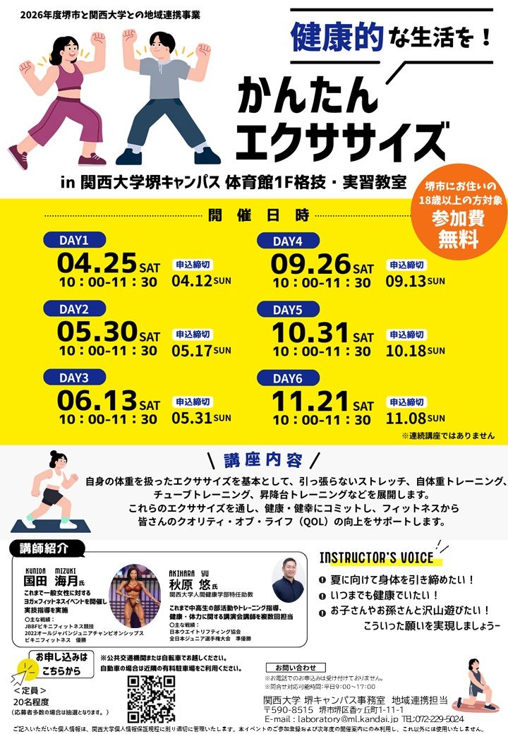 関西大学堺キャンパス事務室 地域連携担当「~健康的な生活を~簡単エクササイズ」係