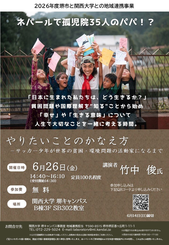 関西大学堺キャンパス事務室 地域連携担当「講演会~やりたいことのかなえ方~」係