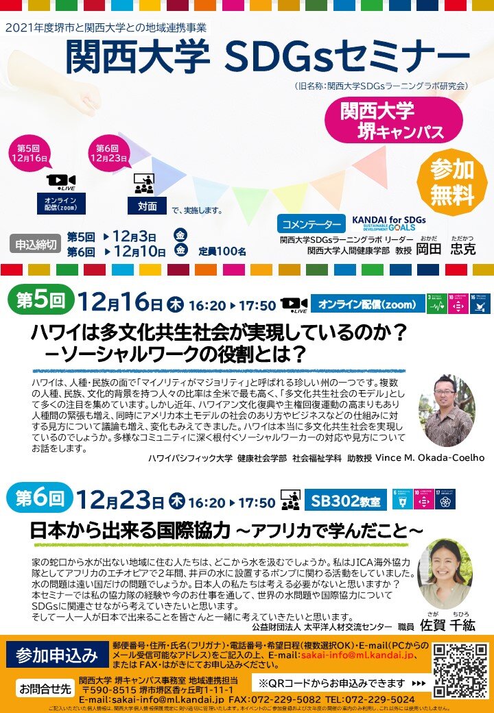 - ■2021年12月16日(木)、12月23日(木)「関西大学SDGsセミナー」を開催します