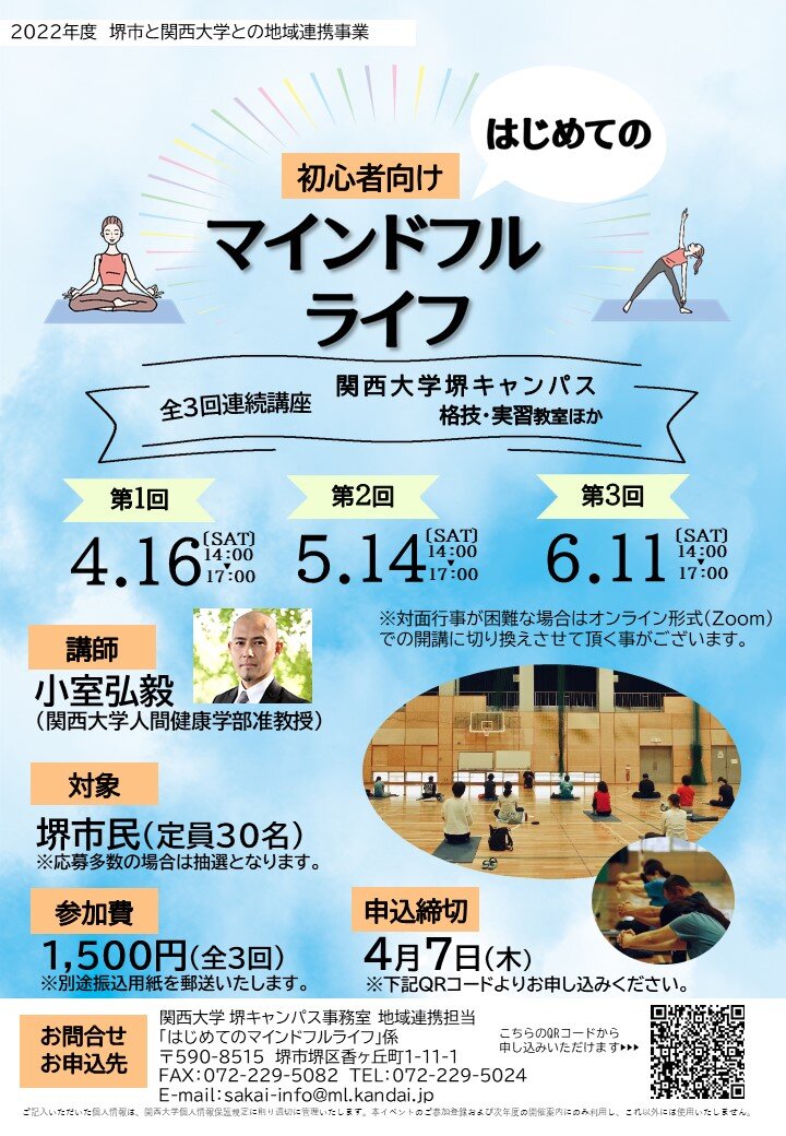 - ■2022年4月23日(土)より「生き方としてのマインドフルネス」経験者向けを開催します