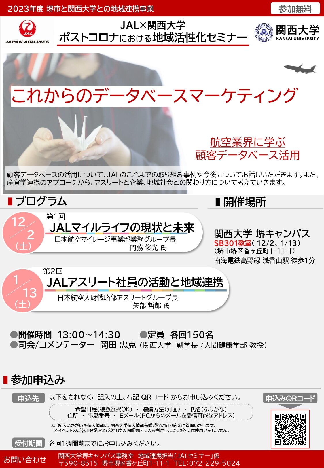 - ■2025年1月11日(土)「JAL×関西大学 ポストコロナにおける地域活性化セミナー」を開催します