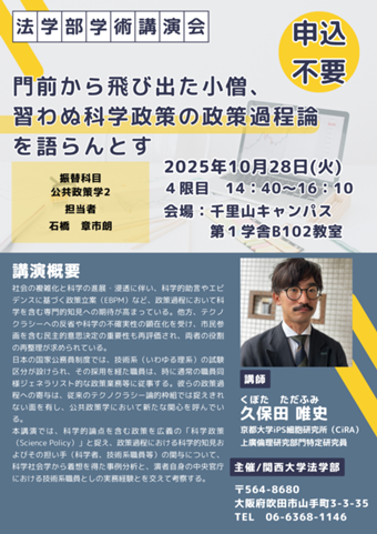 法学部では、次のとおり学術講演会を開催いたします。