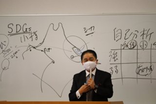 後半には、「地域創生・ SDGs」人材の重要ポイントおよび人材の実践行動について、具体的な説明がありました。実学・現場主義の視点に立って、重要性と緊急性による「順番」を再考すること、経験等で判断せず、「視点」を変える(固定観念を捨てる)ことなど、豊富な経験に基づいた考え方を示していただきました。