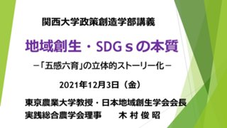 東京農業大学教授・博士(経営学)、日本地域創生学会会長、総務省地域力創造アドバイザーの木村俊昭氏をお招きし、「地域創生・SDGsの本質~『五感六育』の立体的ストーリー化~」をテーマにご講演いただきました。