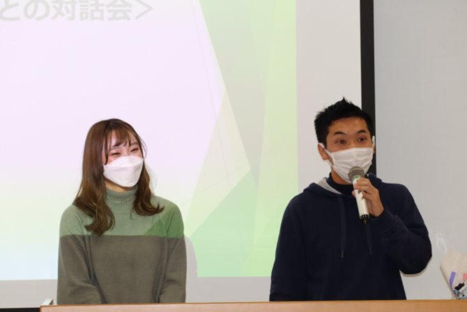 今年度、国家公務員、地方公務員試験に合格した本学部4年次生2名にご協力いただき、公務員を志望した理由、公務員試験対策について詳しくお話をしていただきました。