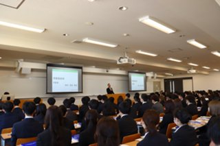 中央体育館にて大学全体での入学式挙行後、教室へ移動し学部案内を実施しました。