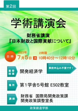 第2回 学術講演会開催のお知らせ(財務省による講演)2023年7月5日(水)