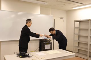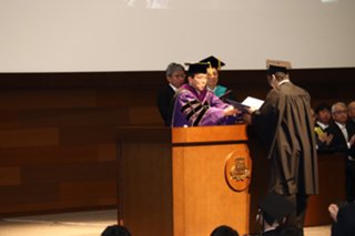 第2学舎BIGホール100にて大学院全体での式典後、千里山キャンパス尚文館にて学位記授与を行いました。研究科長から、「研究は楽しむものであり、これからも研究した内容をより一層、深めていくことになるかと思います。