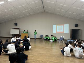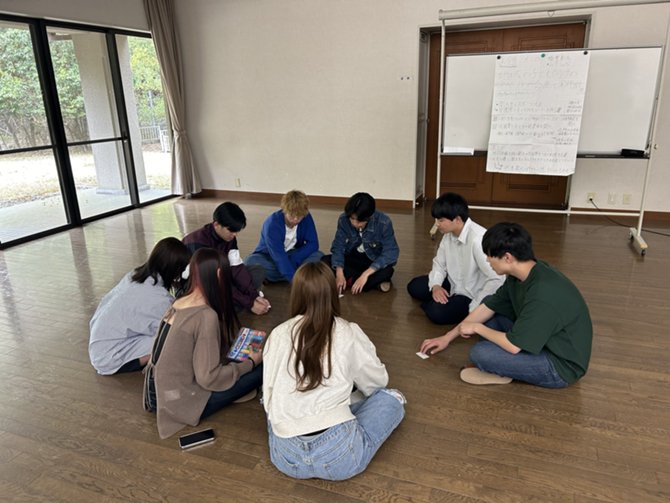 本合宿の企画・運営には、本学部の祭典実行委員会の学生が深く関わっており、グループワークや交流企画等を行い、新入生の表情が徐々に柔らかくなり、会話等も増えていく様子が見られました。