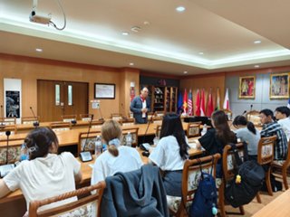 渡航前には、本学部教員による事前授業が行われ、タイの文化や経済、政治について知識を修得し、現地では、タイで現在進行中の経済開発プロジェクトについて、英語で授業を受けました。