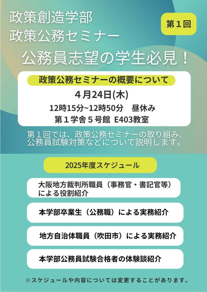 当日は、政策公務セミナ-の取り組みや公務員試験に向けての対策などをお話しします。