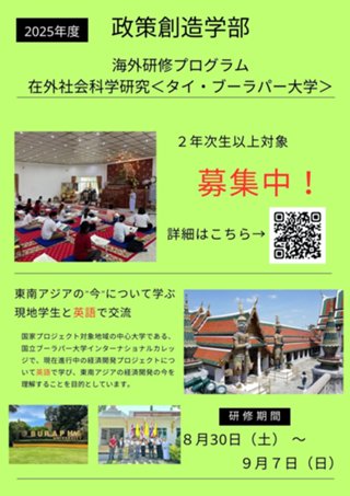 [政策創造学部生限定]2025年度 タイ(ブーラパー大学)での海外研修プログラムのご案内