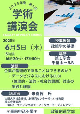第1回学術講演会開催のお知らせ(講師:朱喜哲氏 大阪大学社会技術共創研究センター招へい准教授、株式会社電通第6マーケティング局チーフ・リサーチ・ディレクター)2025年6月5日(木)