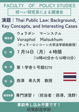 【演題】Thai Public Law:Background, Key Concepts, and Interesting Cases