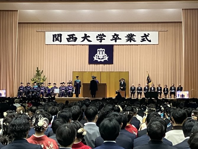 教員からは、「卒業後、様々な経験をすると思いますが、関西大学で学んだ知識や経験を活かして欲しい」と卒業生に激励の言葉が贈られました。