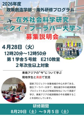 2026年度在外社会科学研究<タイ・ブーラパー大学>募集説明会開催のお知らせ 4月28日(火)