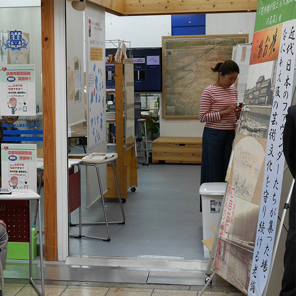天神橋筋商店街の中にある研究施設「関西大学リサーチアトリエ」で、デジタル・プチ展示「花外楼が伝える大坂画壇の名品」を開催しました。花外楼は天保元年創業、大阪会議(明治八年)の舞台であり、なにわ大坂の文化を守り続ける料亭です。関西大学なにわ大阪研究センターの特別プロジェクトとして、歴史ある花外楼が守ってきた大坂画壇の名品の数々を、超高精細でデジタル化しました。今回の展示では、それらの作品を「デジタル展示」として街に持ち出し、多くの方にご鑑賞いただきました。