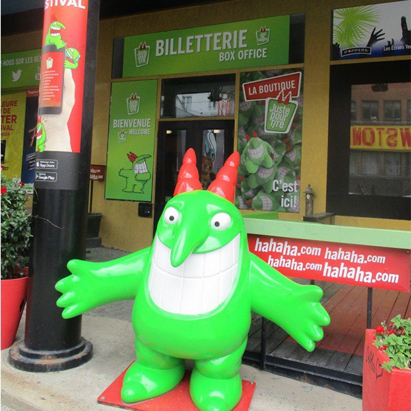 国際ユーモア学会に参加し、日本のユーモアCMについて発表してきました。モントリオールは、映画祭で有名ですが、毎年7月にはJust for Laughsというコメディ・フェスティバルが開催されます。写真は会場の一つで、マスコットのヴィクター君が正面にいますが、日本人のかわいいさ感覚からすれば不気味です。