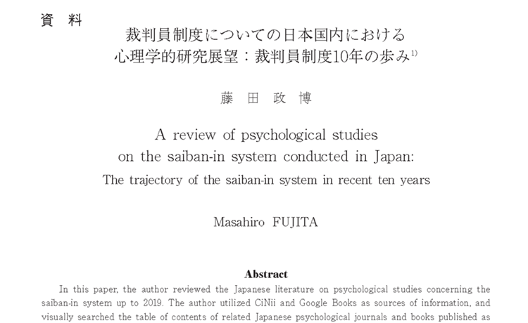 裁判員制度を適切に運用するには、裁判にかかわる人の行動や判断についての客観的な研究と、それに基づく議論が欠かせません。この論文で、今後裁判員制度について議論する際に、過去にどんな研究があったかが見つかりやすくなればと思います。