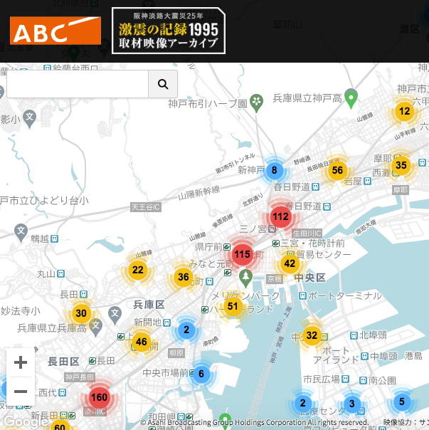 阪神・淡路大震災から25年目を迎えた2020年、朝日放送テレビでは「阪神淡路大震災25年 激震の記録1995」をインターネット上で公開しました(https://www.asahi.co.jp/hanshin_awaji-1995/)。このサイトでは約38時間分の取材テープを、取材地や取材日ごとに自由に閲覧することができます。約6400名の死者を出した大災害から四半世紀がたち、当時の災害報道の検証がはじまっています。