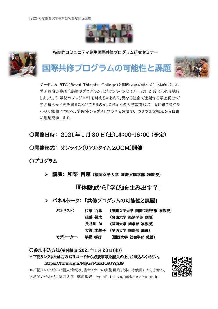 研究セミナー「国際共修プログラムの可能性と課題」の開催について(オンライン, 1月30日)