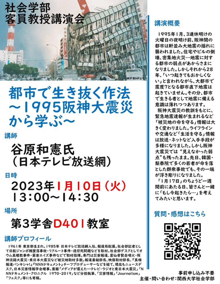 演題:「都市で生き抜く作法~1995 阪神大震災から学ぶ~」