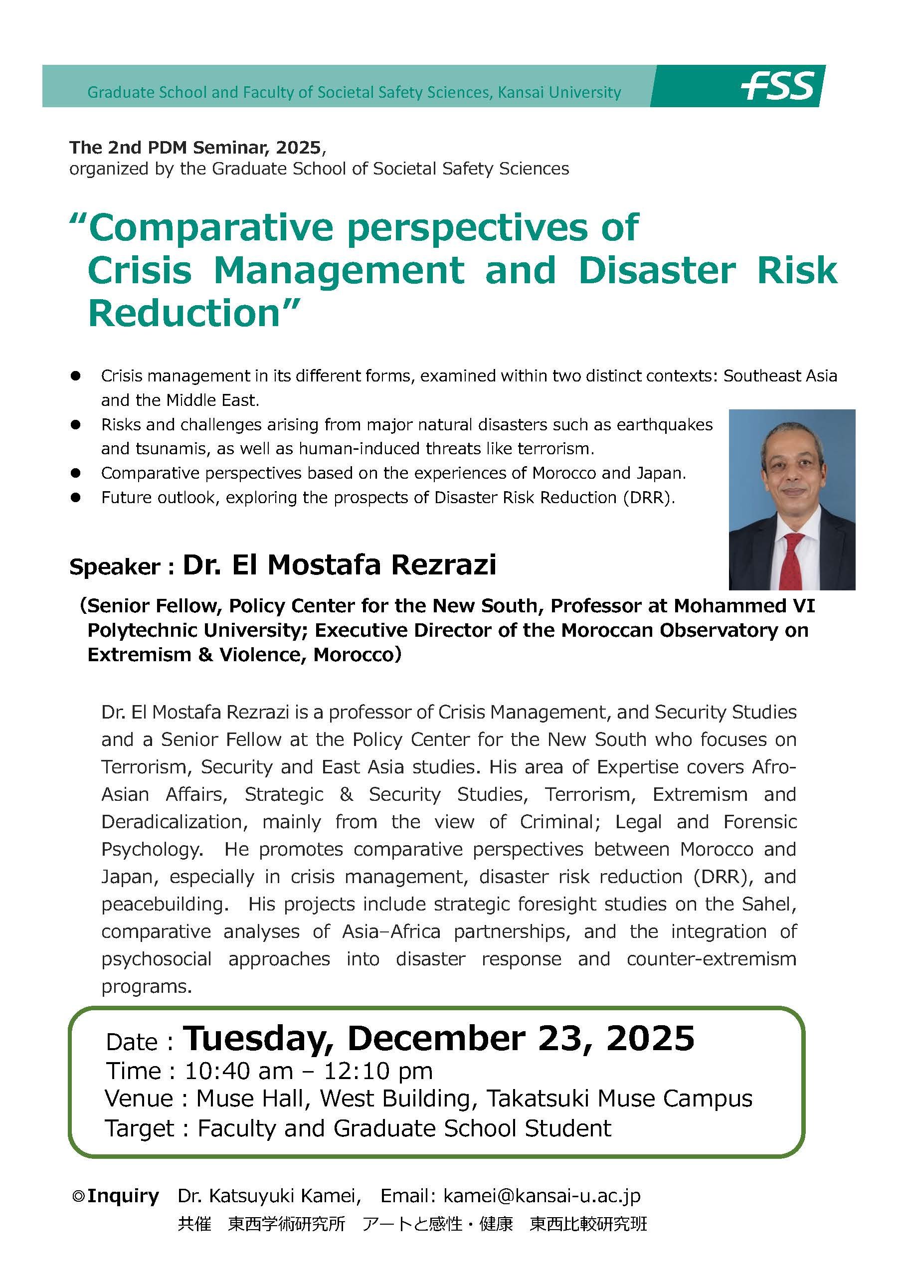 The PDM Seminar is a program designed to introduce research and educational initiatives in social safety studies, disaster prevention and mitigation, and crisis management in various countries.