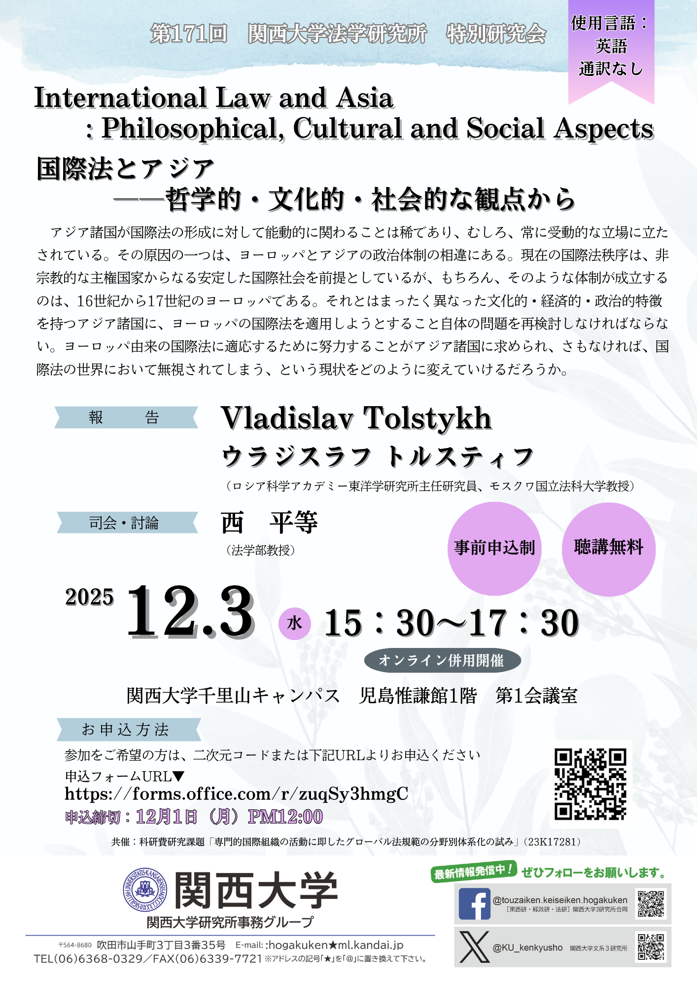 【ご案内】法学研究所 第171回特別研究会(2025.12.3開催)