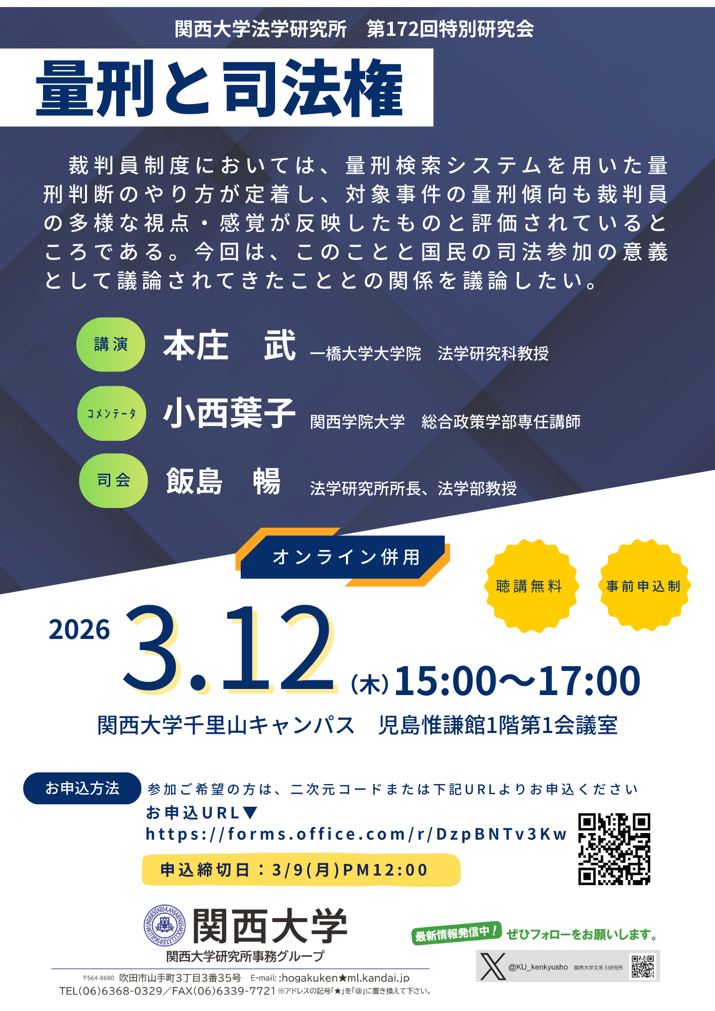 関西大学 法学研究所 第172回特別研究会 オンライン参加について(2026.3.12開催)
