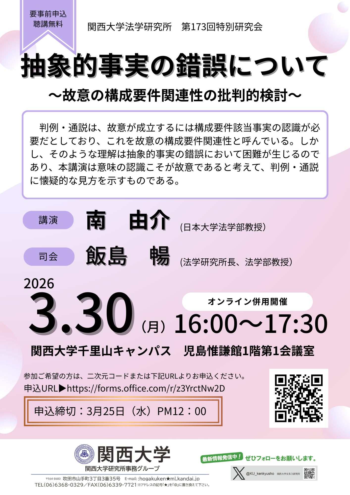関西大学 法学研究所 第173回特別研究会 オンライン参加について(2026.3.30開催)