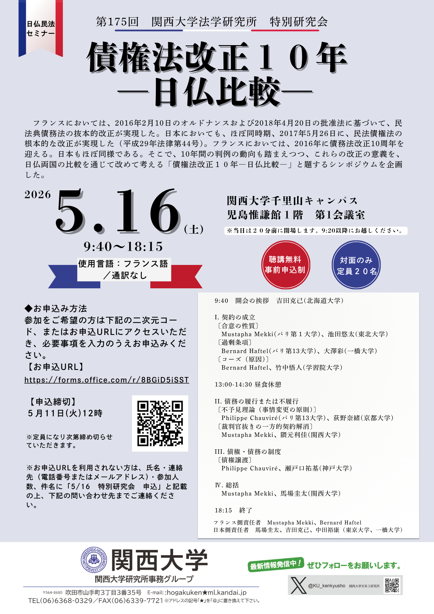 【ご案内】法学研究所 第175回特別研究会(2026.5.16開催)