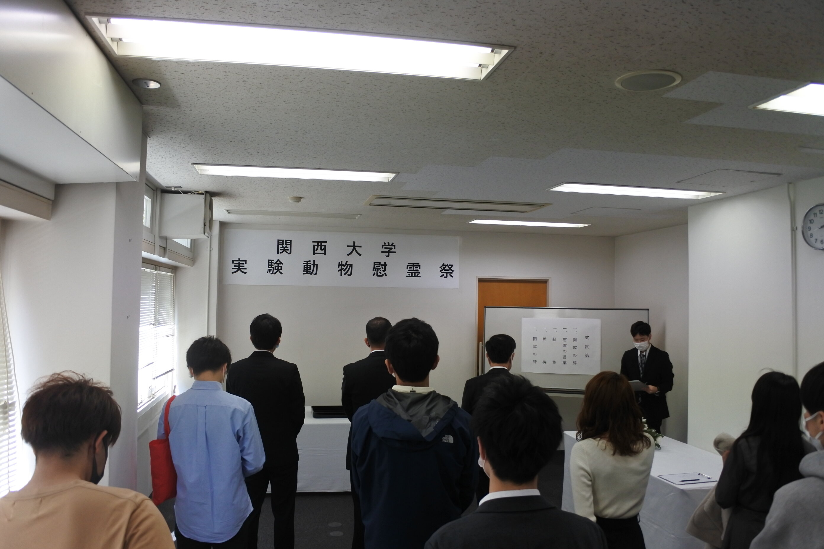 2021年3月24日(水)、千里山キャンパス ハイテク・リサーチ・コアにて、本年度の実験動物慰霊祭を執り行いました。慰霊祭には、教職員及び学生を合わせて23名が参列し、本学の教育・研究に供された実験動物に対する感謝と追悼の意を捧げました。