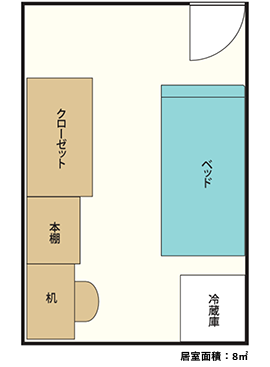 | デポジット | 30,000円 ※入寮時に預かり、納入義務のある最終月の寮費・寮雑費に充当します。 |