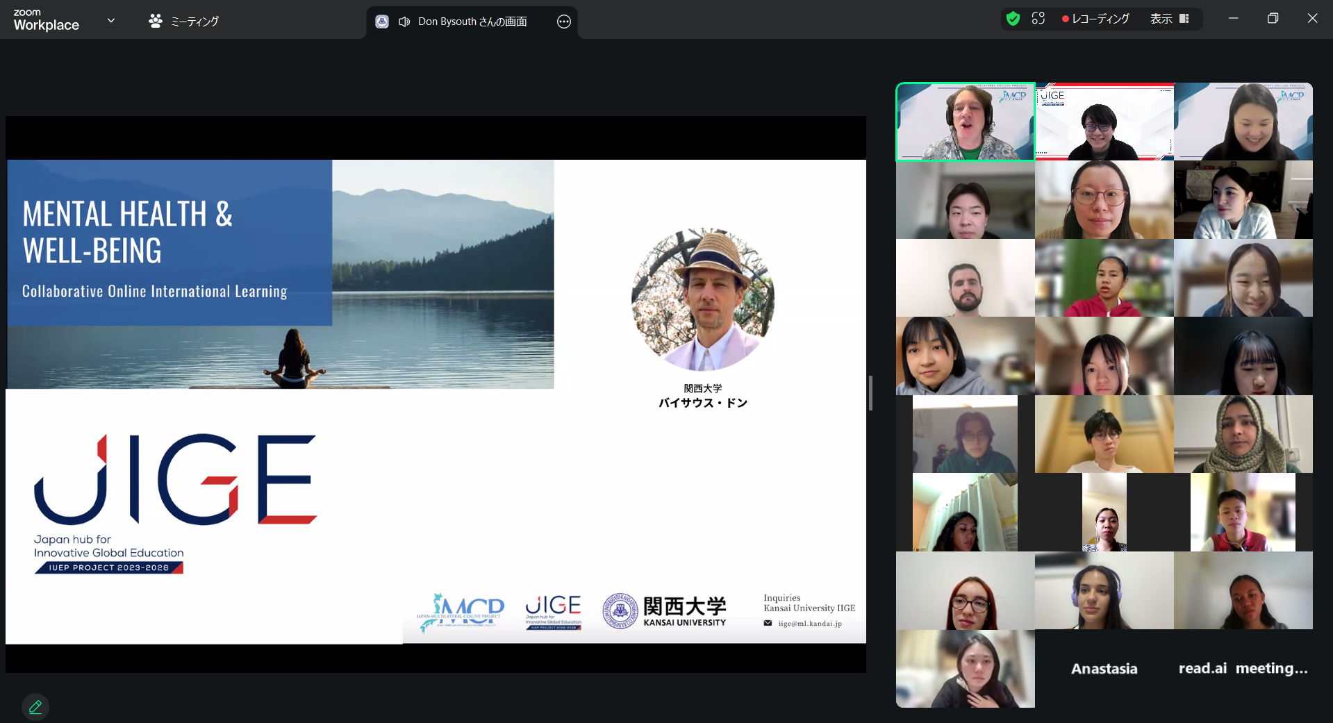 The Mental Health and Well-Being course was facilitated by Prof. Keiko Ikeda (Kansai University) and Prof. Don Bysouth (Kansai University), and supported by Prof. Amy Ishida (Kansai University) and Prof. Kinnosuke Manabe (Kansai University). The program provided an engaging learning environment for students to explore diverse perspectives on mental health, emotional resilience, and well-being in today’s interconnected society. Through interactive lectures and discussions, participants examined topics such as stress management, mindfulness, intercultural empathy, emotional intelligence, and the impact of digital environments on mental health.