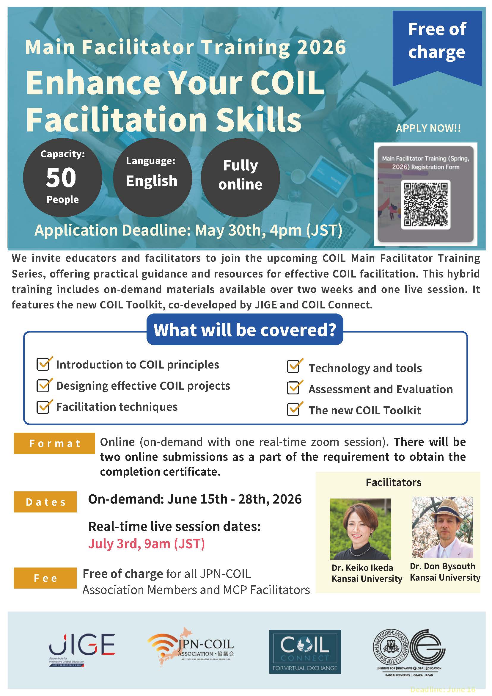 Participants will gain access to on-demand content co-created by COIL Connect and JIGE, along with a live, interactive learning session scheduled for early July. The session will be led by our vice-director, Keiko Ikeda, and JIGE Associate Professor, Don Bysouth.