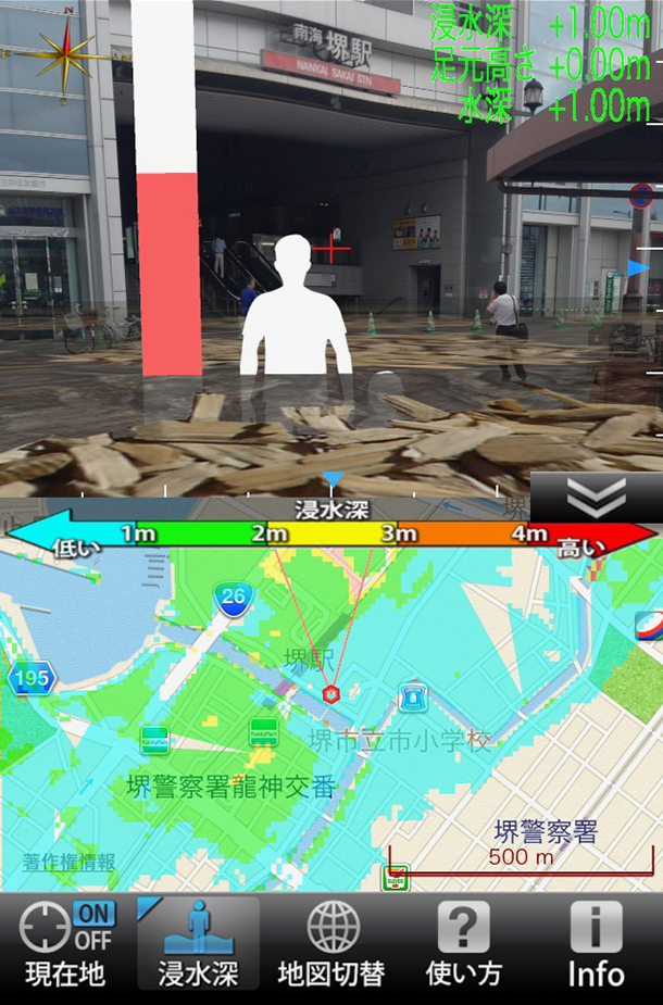 All this is, however, only part of the story. True to his resolution, Takahashi has developed tools to educate the masses in preparation of the imminent Nankai Trough Earthquake. These include an augmented reality (AR) software that simulates a tsunami on Port Island in the city of Kobe and an iPhone application based on the tsunami hazard map of Sakai, a city in Osaka.