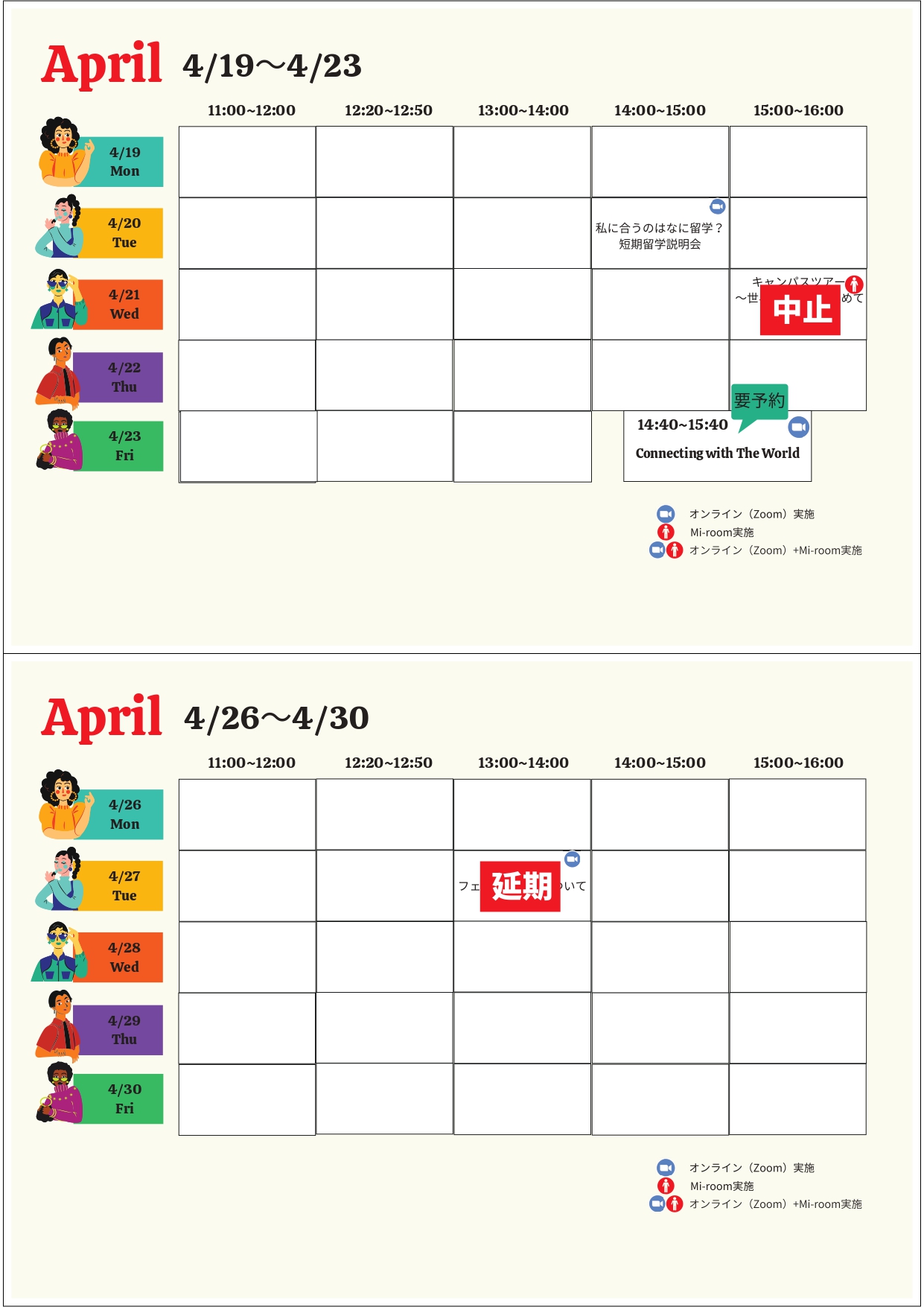 各セッションの予定や詳細は、添付のスケジュールをご覧ください。