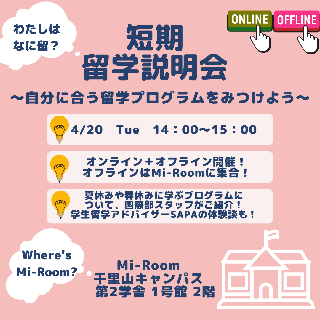 短期プログラム:4/20(火)14:00~15:00